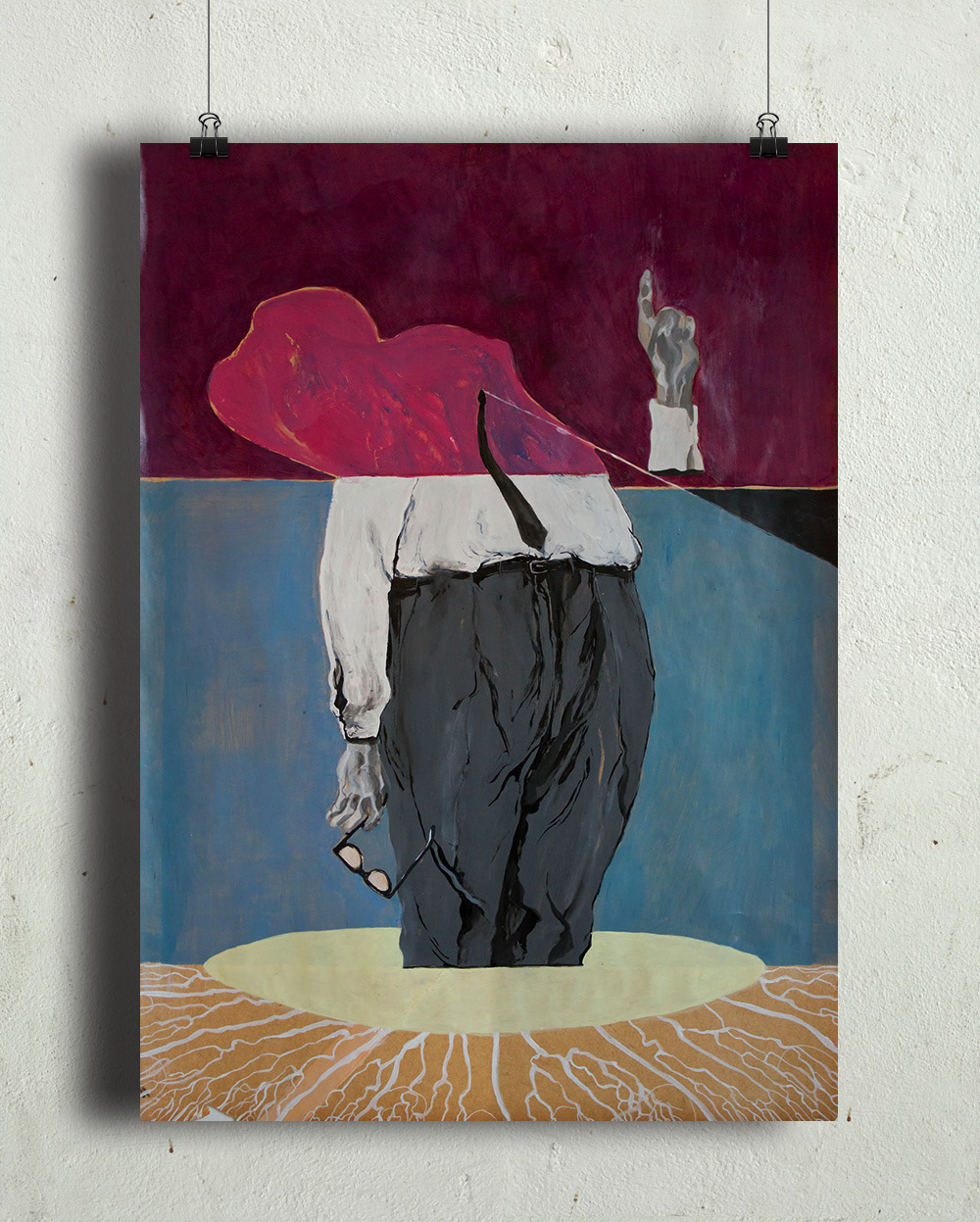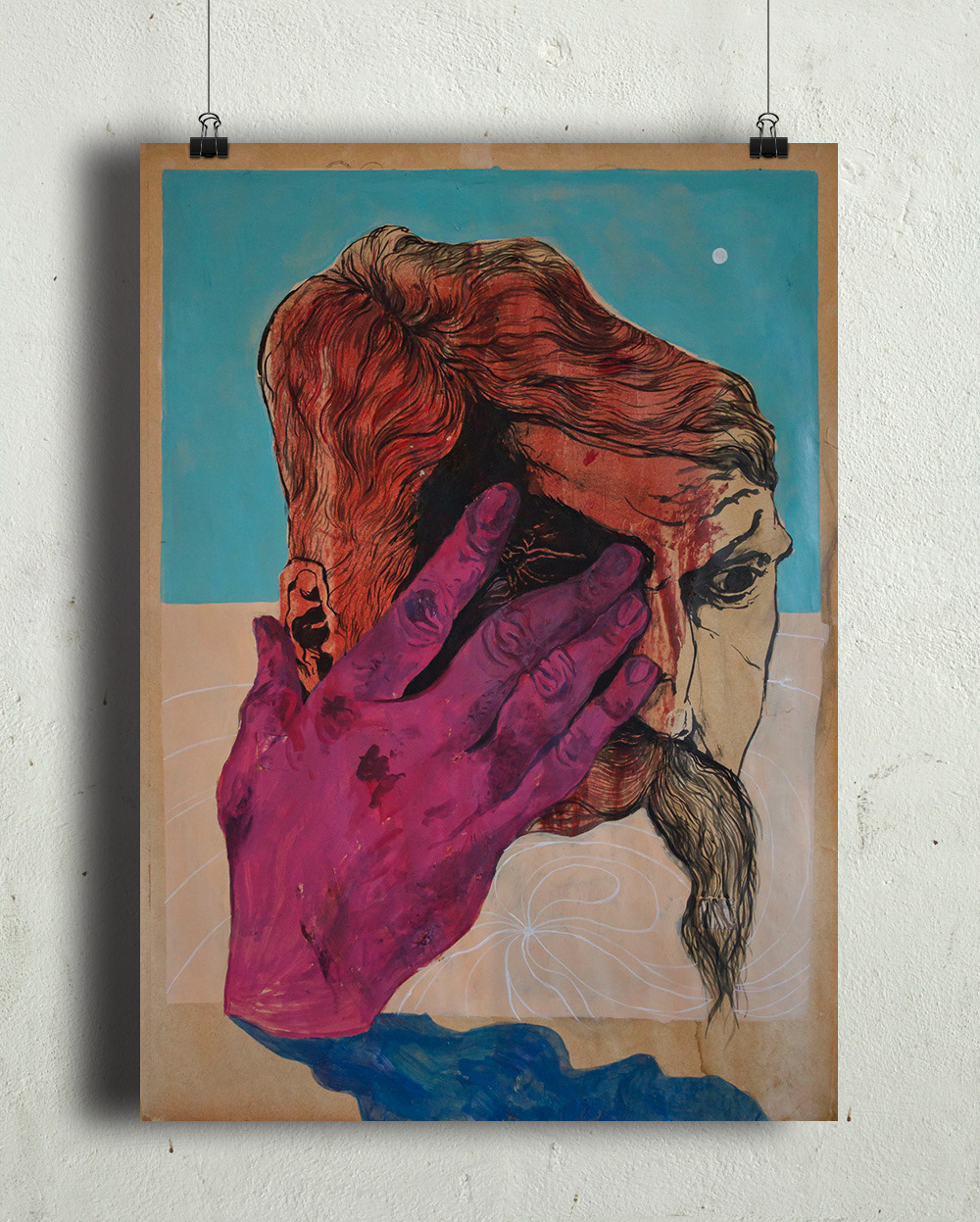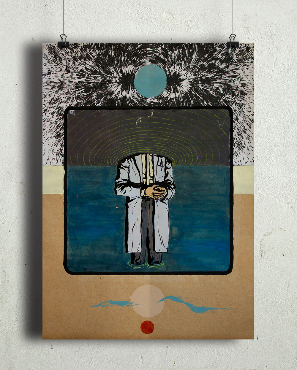 Scientists facing their problems. Series of three paintings, acrylic on old paper, 42x59cm.
